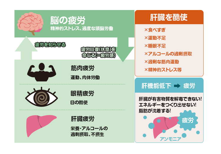 エネルギー不足や毒素の蓄積によって疲労につながると考えられます。