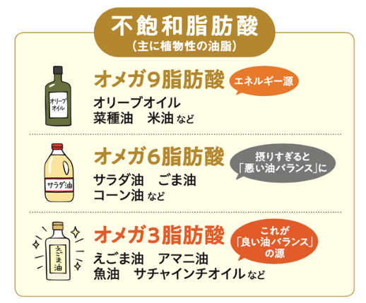 油には、常温で固まる油と、固まらない油の2種類があります。固まりにくい油には「オメガ3脂肪酸」「オメガ6脂肪酸」「オメガ9脂肪酸」があります。そして固まりやすい油には「短鎖脂肪酸」...
