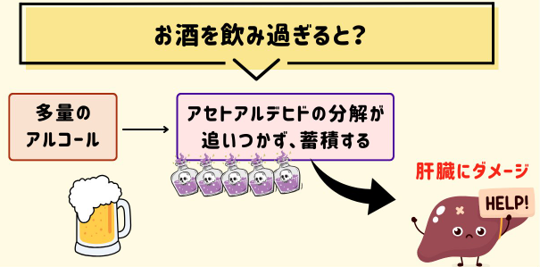 「アセトアルデヒド」という有害な物質となり、 無毒化され排泄されていくのですが、アルコールを処理しきれないときには、 脳に影響を及ぼします。 これが「酔っ払い」の状況です...