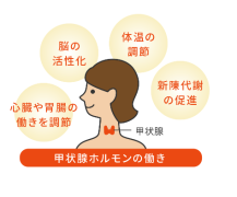 甲状腺は喉ぼとけの下にある蝶々のような形をしたもので、体の新陳代謝を活発にするホルモンをつくる臓器です。甲状腺ホルモンは、糖やたんぱく質、脂質の代謝を促したり、酸素消費を行って体温...