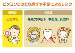 少量ずつでも、こまめに食べるビタミンCは体内で合成されず、またすぐに体外に排出されてしまうので、毎日こまめに摂る必要があります。 1日に必要な量を摂取しても、一度に吸収で...